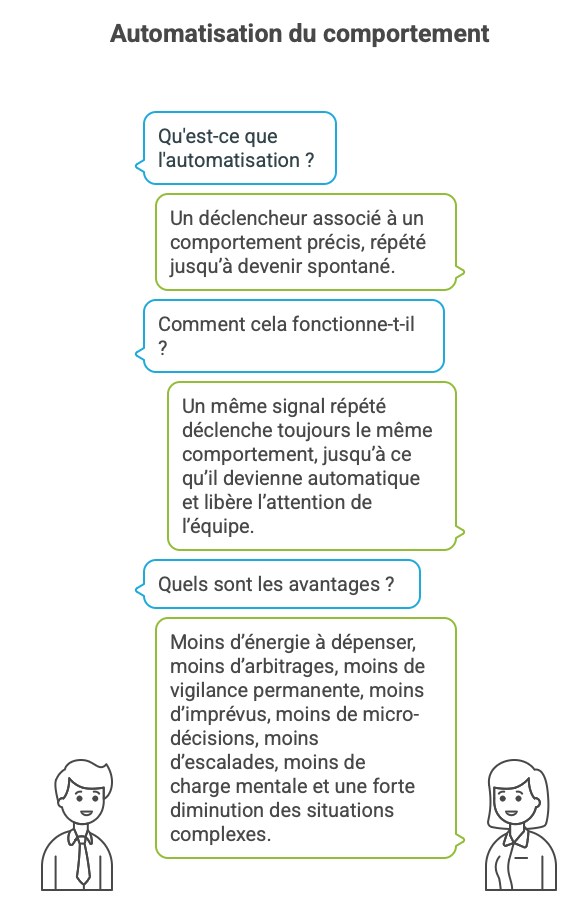 Moins d’imprévus, moins de ré-explications, moins de micro-crises.
